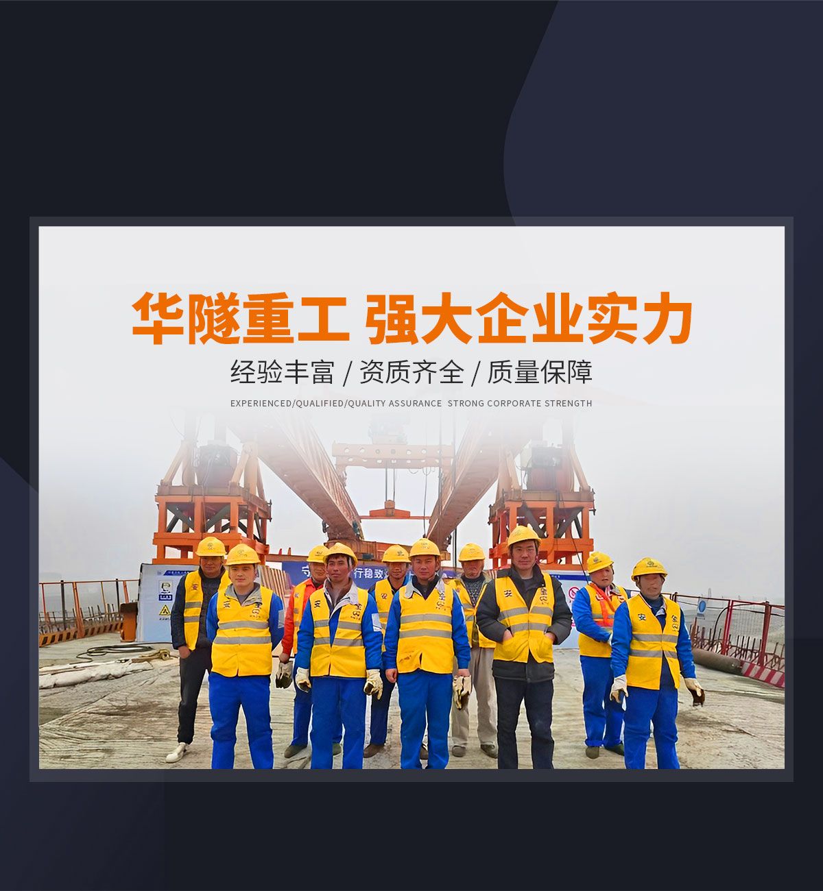 河南華隧重工機械裝備有限公司主要從事通用門式起重機、橋式起重機、電動單梁起重機,輪胎式起重機、架橋機、提梁機、遠梁平車、鋼絲繩電動萌蘆、卷揚機、起重配件制造、銷售:起重機械租賃、安裝和維修,起重設備園收,機械設備維修,鋼結構工程承包,橋梁工程及技術咨淘服務,銷售五金制品、機電設備:建設工程監理,建設工程設計,各類工程建設活動,建筑勞務分包,建筑物折除作業,施工作業,工程管理服務,土石方工程施工,裝如發運。  公司已通過IS0國際質量、環境、健康與安全三合一標準認證,特種設備制造許可證和特種設備安裝改造維修許可證。擁有完熟的質量管理體系。嚴格的管理制度,強大的生產能力和先進的檢測手段,在保證產品質量的同時,也具備了極強的市場競爭力?! 」緢猿挚萍紕撔聻槔砟睿a品質量為核心,注重信譽,建立了減信可靠、快捷、思速。便利周到的售后服務網絡?! ∥覀儞碛械募夹g專家和技術服務隊伍為客戶提供充善的售前技術支持和全天候的售后服務體系,讓您無后顧之憂,享受一站式的超值服務。  “華隧重工,伴您成功“是華隧重工永遠的宗指,真被的希望與各界朋友攜手并進。共創輝準!
